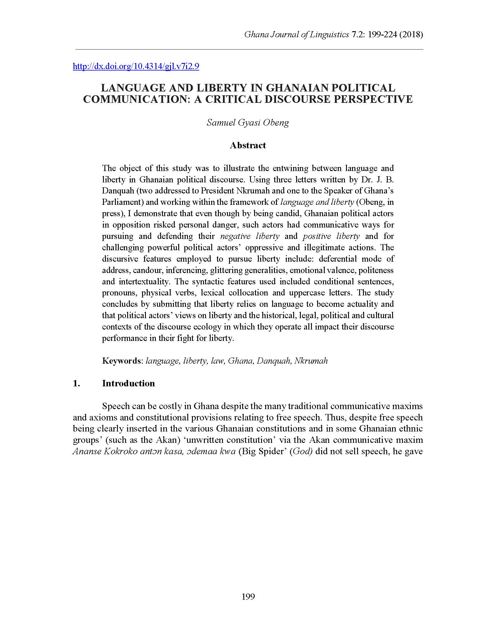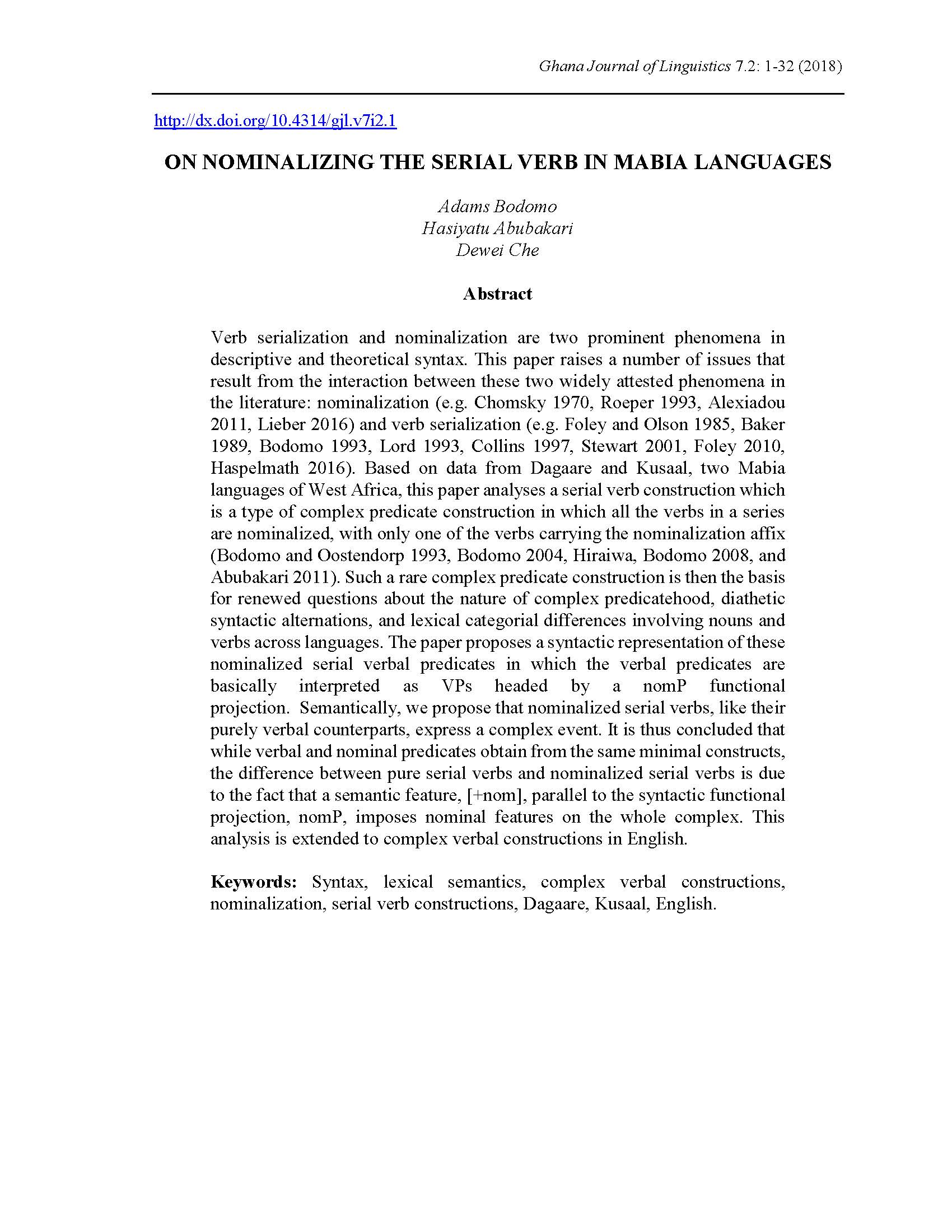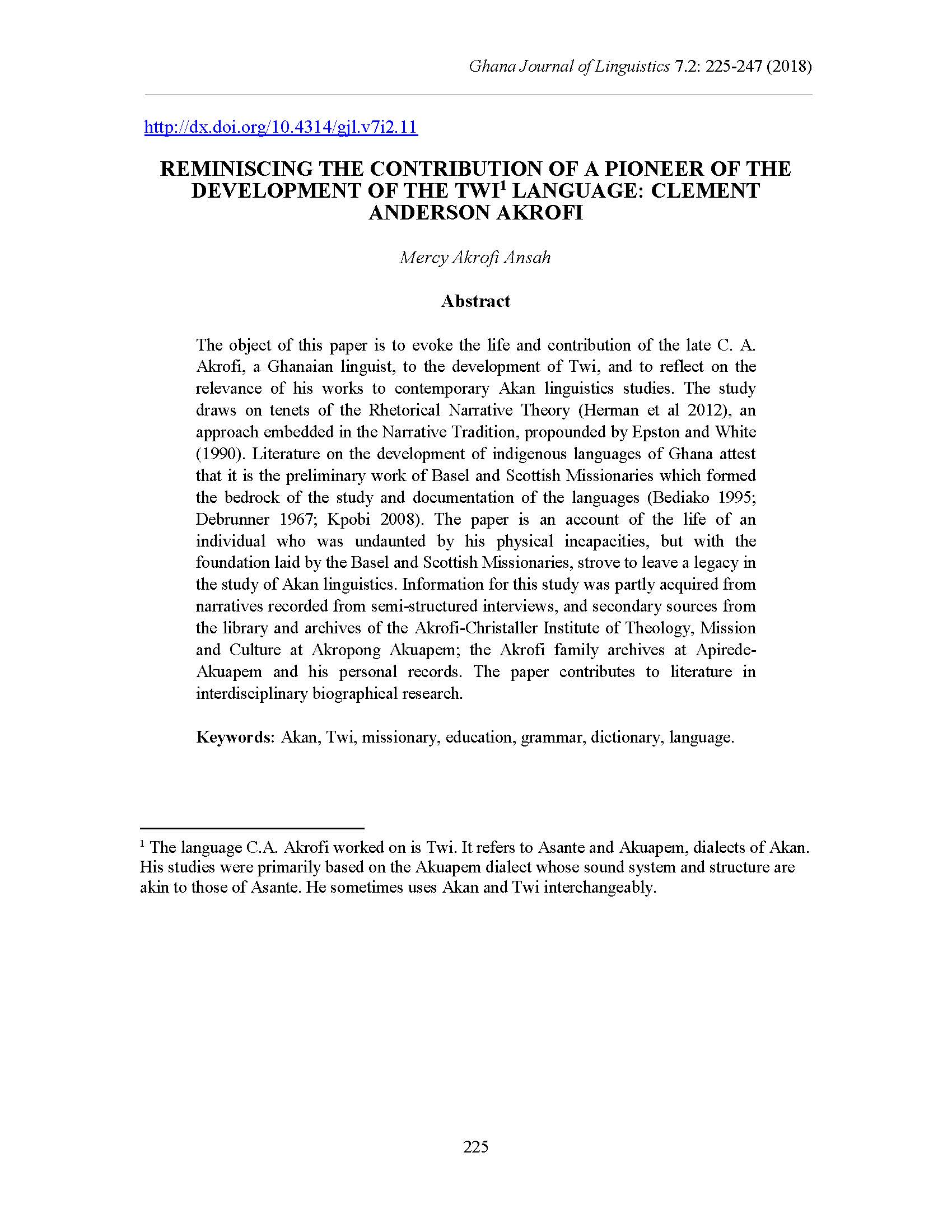 Vol. 7 No. 2 (2018): Ghana Journal of Linguistics 7.2 (2018) Special Issue Dedicated to Professor Florence Abena Dolphyne