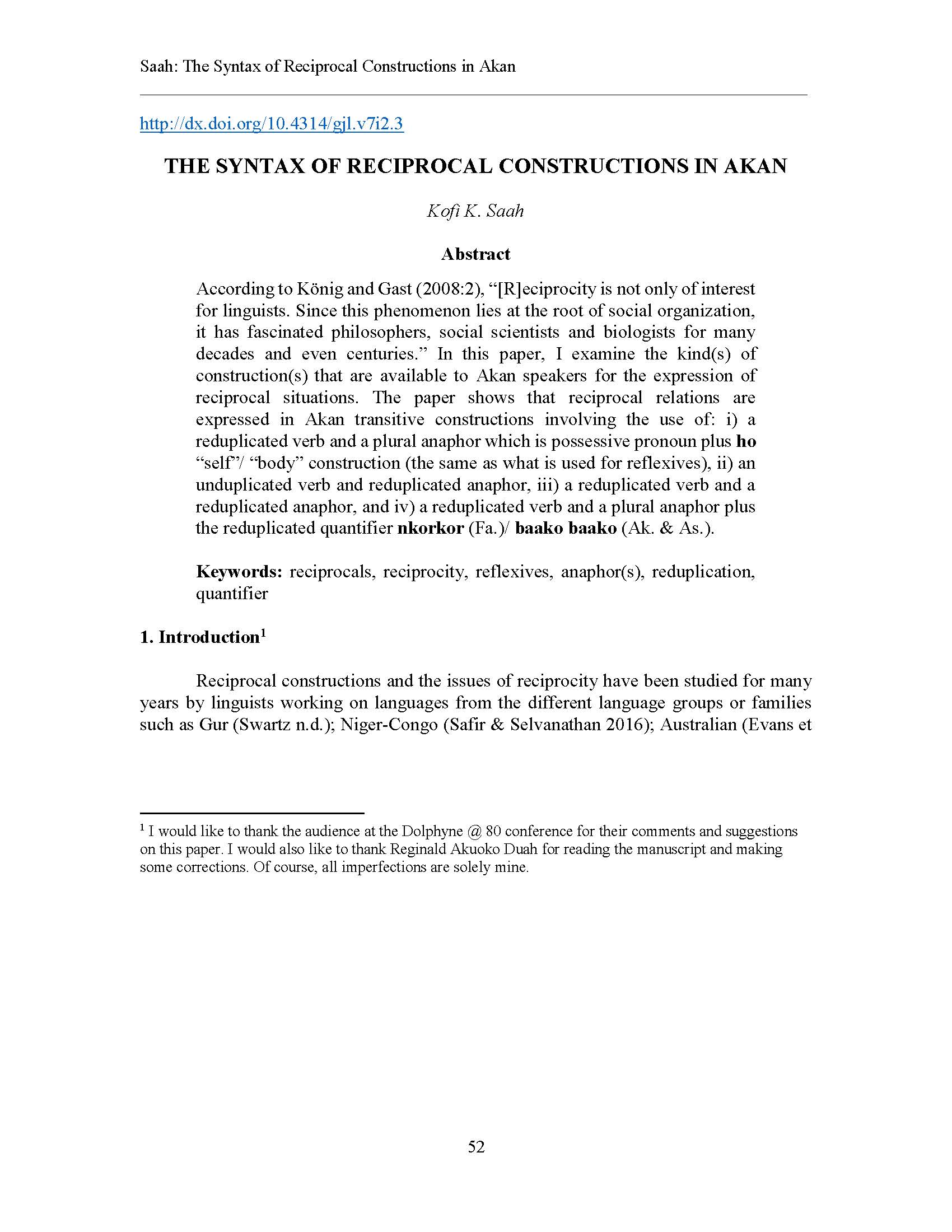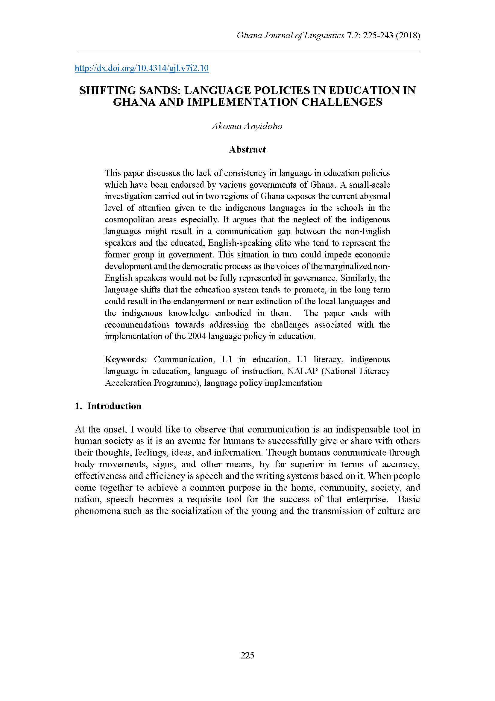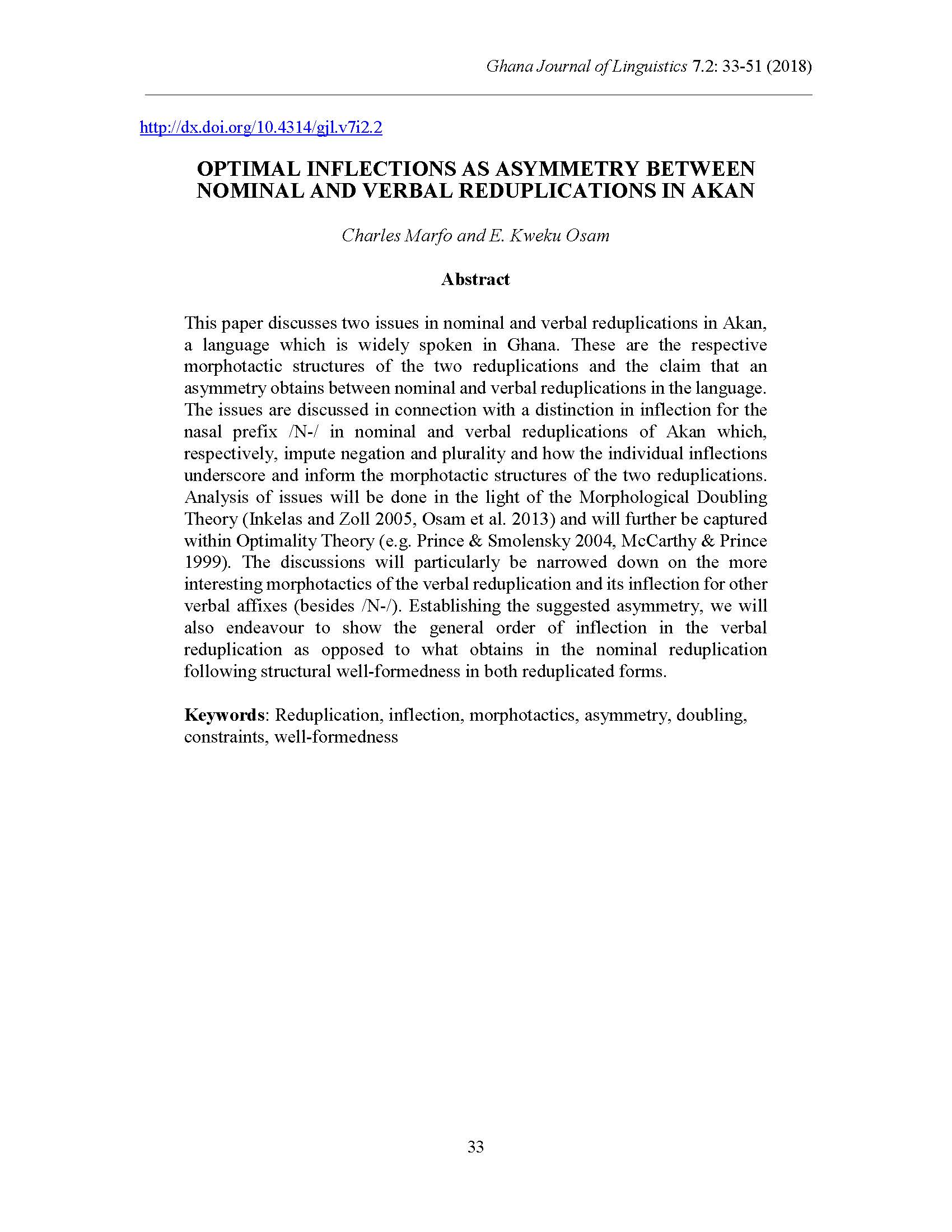 Vol. 7 No. 2 (2018): Ghana Journal of Linguistics 7.2 (2018) Special Issue Dedicated to Professor Florence Abena Dolphyne